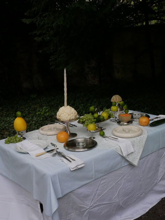 Formschöne Tischobjekte für einen unkomplizierten sommerlichen Tisch, der sich mit wenigen Handgriffen, aber farbenfrohem Obst, in Stimmung begibt.