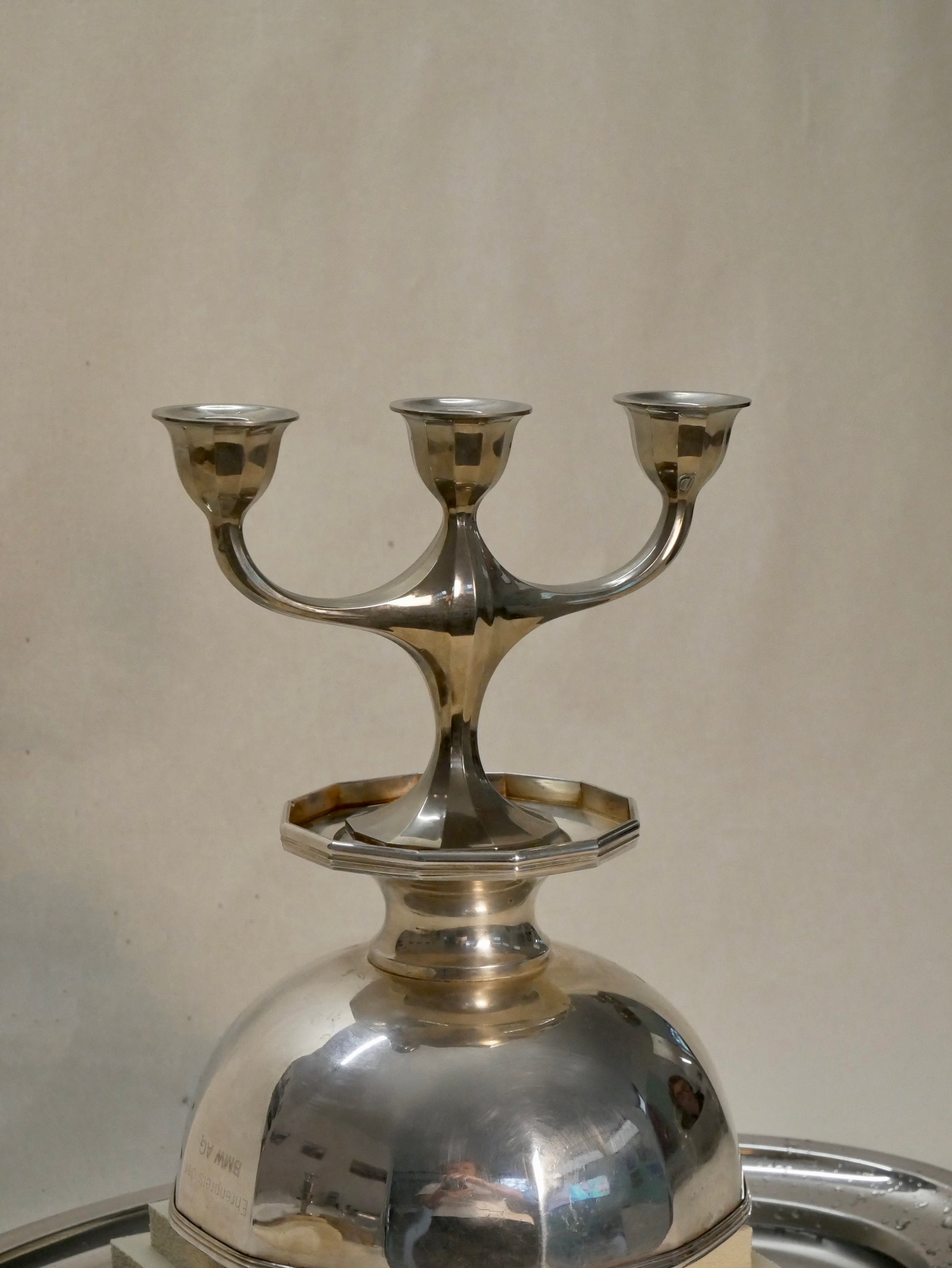 Art Deco candlestick as a 3-flame, which with its clear edges and soft curves incorporates the classic elements of Art Deco - without frills and thus blends in with many other styles.