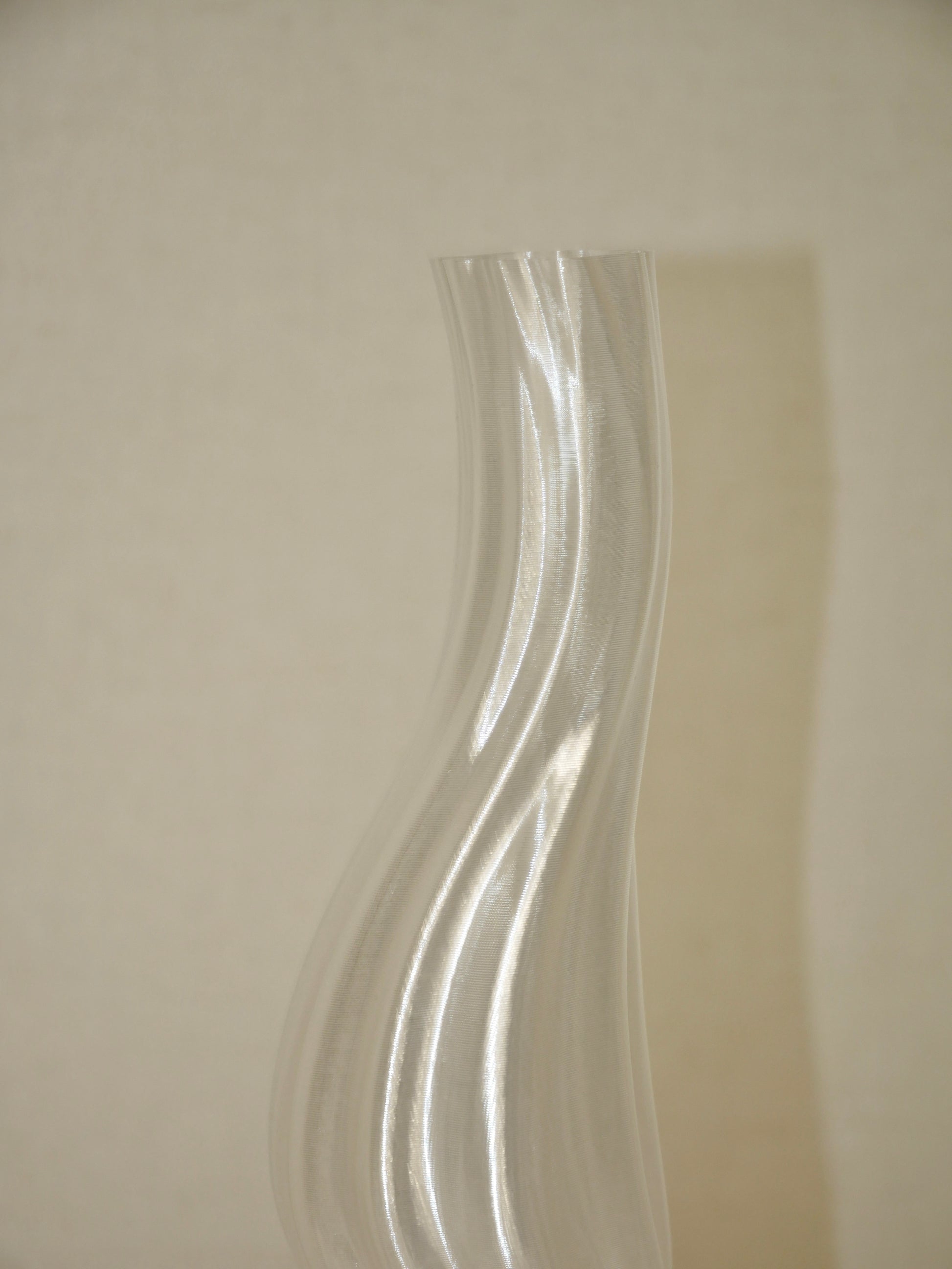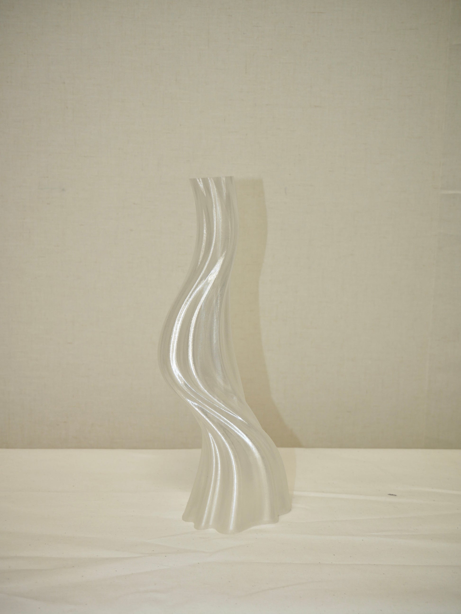 Wie der Glitzer auf dem Wasser und doch so flüchtig, leicht und elegant erheben sich diese anmutigen Vasen der in Frankreich lebenden Irin Eimear Ryan. Ihr Entwürfe sind leicht, raffiniert und zeitlos. So wie ihr Material, dass ruhig aus dem 3D Drucker in leisen Bahnen übereinander Schicht für Schicht wächst. Nicht nur als Objekte ein wahrer Hingucker im Raum, auch als Vase.