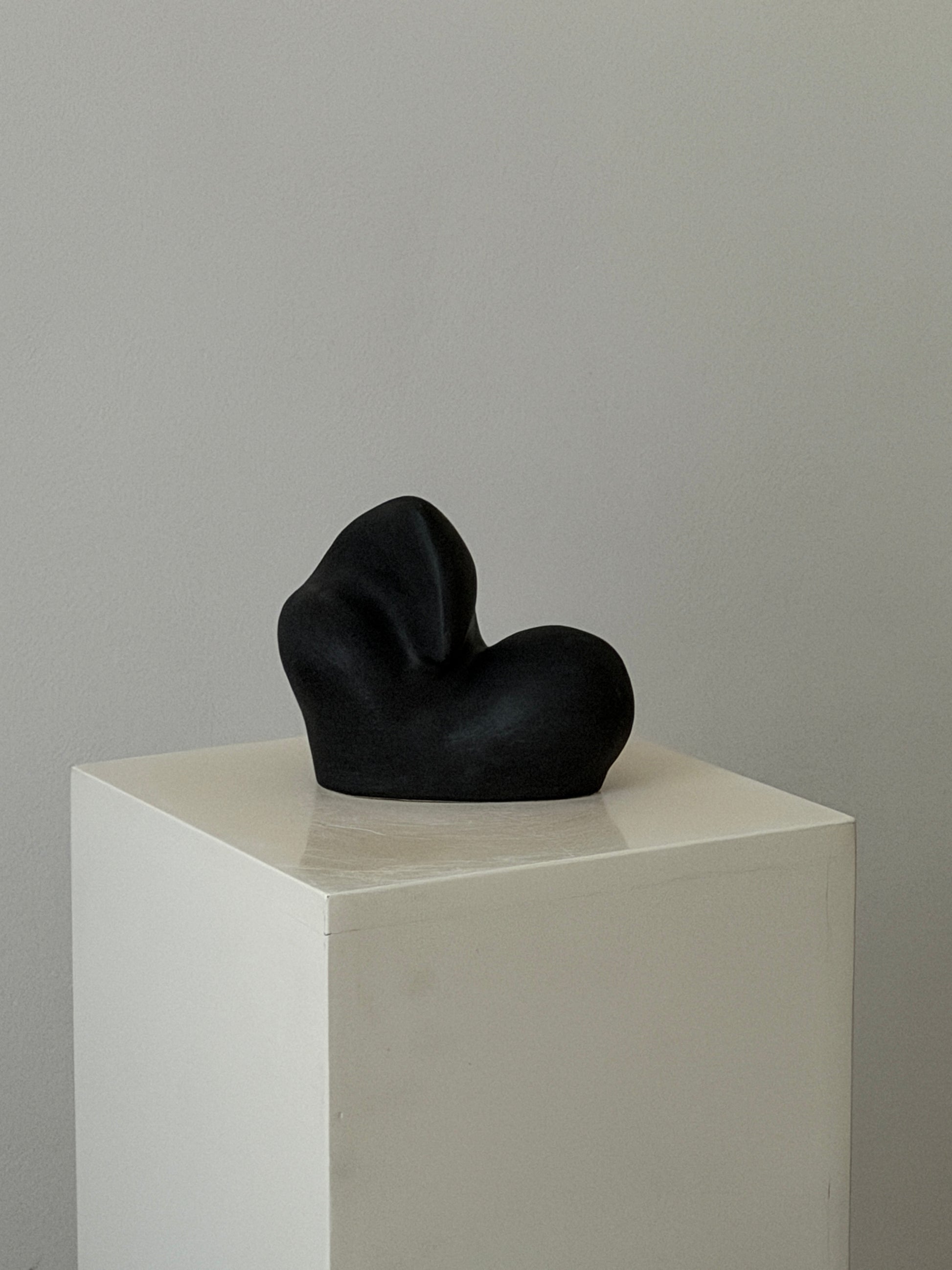 Wie eine dunkle Welle die im friedlichen Meer langsam größer wird, ganz weich, so wirkt diese Steingut Skulptur in tiefem Schwarz auf uns.